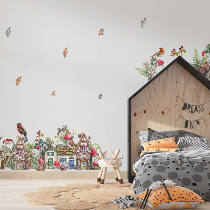 "Fairy tale town" wall stickers made of high-quality materials are interior decorations full of colors in a pastel style! Simple and quick to use decorations for a children's room will allow you to change the appearance of the interior in just a few moments!