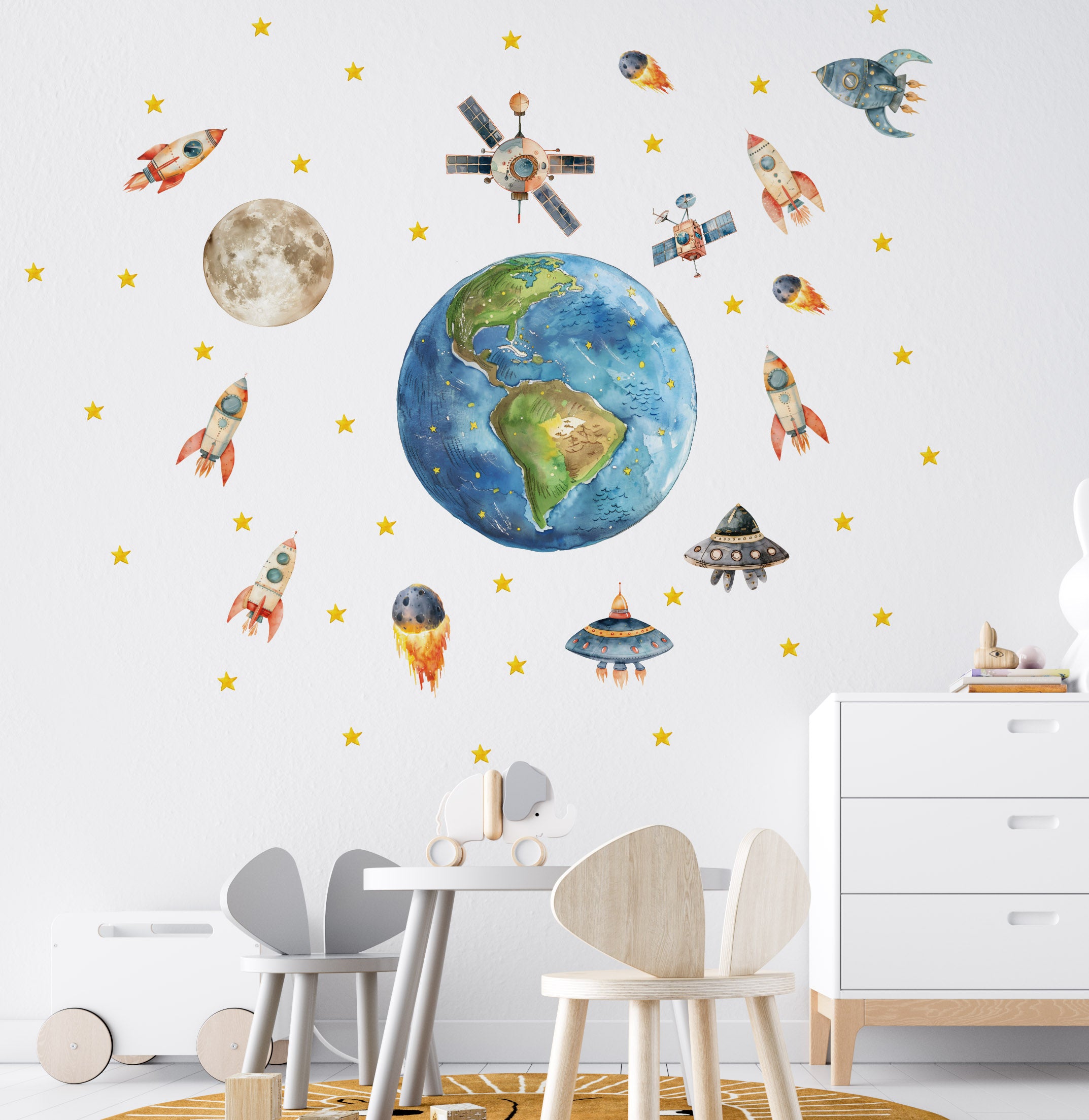 Space wall decals are the perfect way to transform your child's room into a galaxy brimming with imagination. The set includes rockets, Earth, UFOs, satellites, the Moon, stars, and flaming comets – all printed with child-safe, water-based inks. The space wall decals are precisely contour-cut, with no background, and each element is separate, allowing you to create your own unique composition. Upon request, we can modify the dimensions or create a unique set based on our illustrations. All shipments are shipped as registered and insured parcels, with tracking at every stage of delivery. These space wall decals are an exciting addition to a boy's room or nursery, allowing your little one to discover the stars without leaving home.
