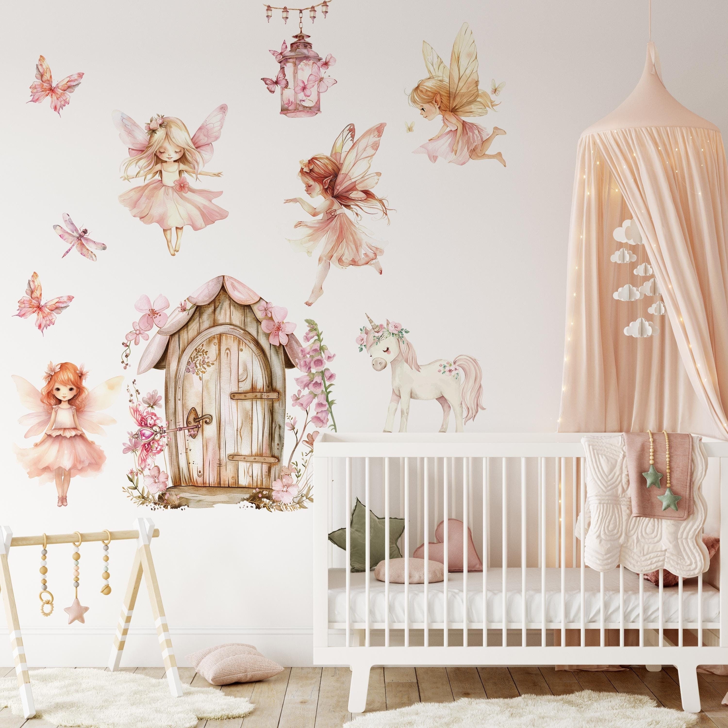 Fairy wall stickers is a wonderful set of fairy wall decals for girls' bedrooms. Create a magical atmosphere in your child's bedroom with wonderful children's room stickers. Stickers are a wonderful addition and add charm to any interior. Wall stickers with fairies for nursery rooms are a quick way to transform any interior. The elements of the wall sticker for the children's room are separate. Thanks to this, you can create your own composition. Hand-painted, digitized design made with attention to the smallest details. Nursery wall stickers are a brilliant gift idea for a girl. - Stickers made with HP latex technology, which allows you to install stickers in the bedroom https://igibee.etsy.com Materials: For smooth walls - material which can be used on a clean smooth wall without any texture. for texture wall - material that can be used on textured walls, smooth walls, doors, furniture, any flat surface indoors. Before applying wall decal, clean the wall of any dust - wipe it with a damp cloth and leave to dry. 100% HANDMADE - We create all products for you on an ongoing basis PREMIUM QUALITY - Our products are made on a printer that is the only one in the world to have printing certificates in public places such as kindergartens, hospitals. EASY APPLICATION - You can easily attach our self-adhesive wall decals and remove them without leaving any residue. the sticker should be applied to a clean, smooth wall. Stickers are not suitable for walls covered with wallpaper or other materials. Information for you: - Direct daylight does not affect print quality over time - Hp Latex Technology Pastel colours of stickers may slightly differ - depending on the settings of your monitor. If you have any questions, please write to me :) I will be happy to answer! Add my Store to your favourites! You will know what new works are added to the store! fairy wall decals, fairy stickers, girls room decor, fairy decor, girls room wall decals, nursery wall decor,