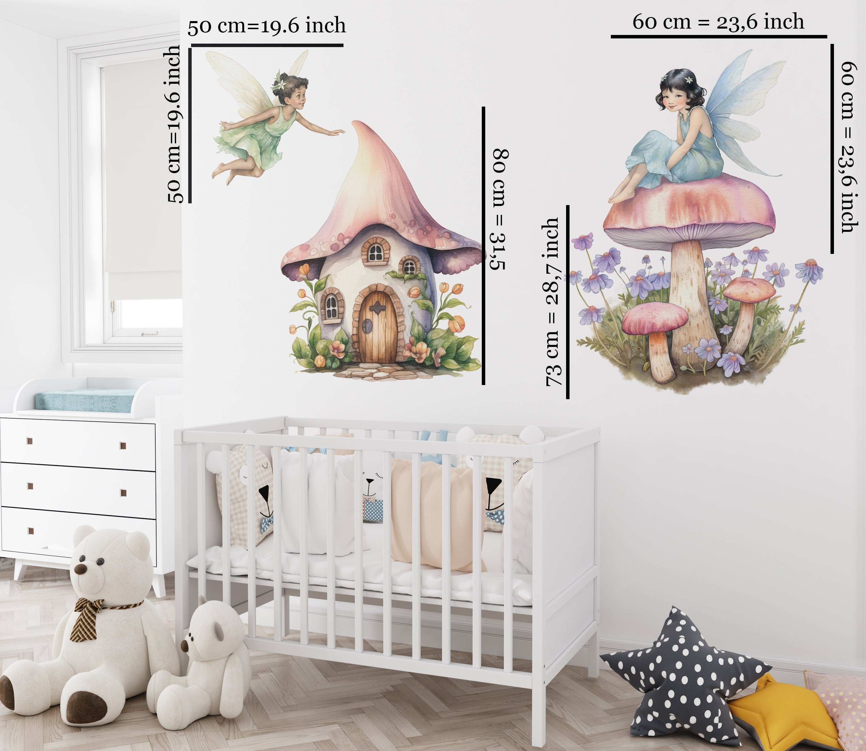 Fairy Wall Decals – the ultimate kids' decor solution. These delightful peel-and-stick stickers feature adorable fairies in charming dresses, nestled alongside their whimsical homes. Our extensive collection boasts a variety of captivating designs to suit every little princess's taste. Explore our store for more enchanting options and be sure to review all images for inspiration. https://igibee.etsy.com Materials: For smooth walls - material which can be used on a clean smooth wall without any texture. for texture wall - material that can be used on textured walls, smooth walls, doors, furniture, any flat surface indoors. Before applying wall decal, clean the wall of any dust - wipe it with a damp cloth and leave to dry. 100% HANDMADE - We create all products for you on an ongoing basis PREMIUM QUALITY - Our products are made on a printer that is the only one in the world to have printing certificates in public places such as kindergartens, hospitals. EASY APPLICATION - You can easily attach our self-adhesive wall decals and remove them without leaving any residue. the sticker should be applied to a clean, smooth wall. Stickers are not suitable for walls covered with wallpaper or other materials. Information for you: - Direct daylight does not affect print quality over time - Hp Latex Technology Pastel colours of stickers may slightly differ - depending on the settings of your monitor. If you have any questions, please write to me :) I will be happy to answer! Add my Store to your favourites! You will know what new works are added to the store! fairy wall decals, fairy stickers, girls room decor, fairy decor, girls room wall decals, nursery wall decor,