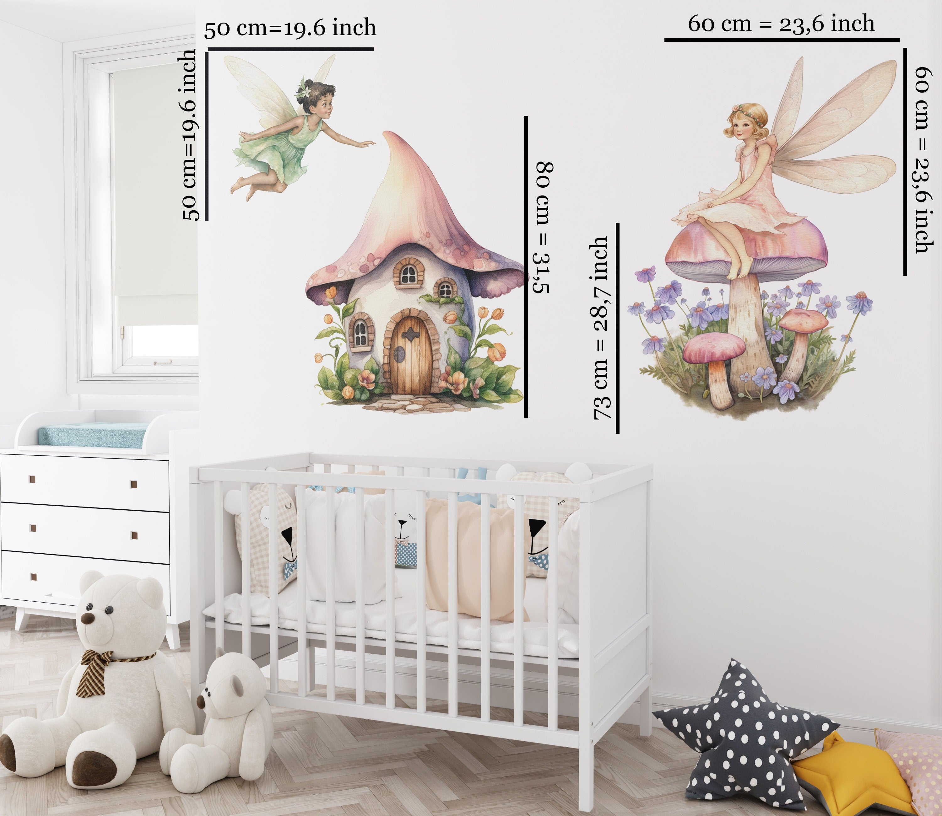 Fairy Wall stickers, fairy wall Decals – the ultimate kids' decor solution. These delightful peel-and-stick stickers feature adorable fairies in charming dresses, nestled alongside their whimsical homes. Our extensive collection boasts a variety of captivating designs to suit every little princess's taste. Explore our store for more enchanting options and be sure to review all images for inspiration. https://igibee.etsy.com Materials: For smooth walls - material which can be used on a clean smooth wall without any texture. for texture wall - material that can be used on textured walls, smooth walls, doors, furniture, any flat surface indoors. Before applying wall decal, clean the wall of any dust - wipe it with a damp cloth and leave to dry. 100% HANDMADE - We create all products for you on an ongoing basis PREMIUM QUALITY - Our products are made on a printer that is the only one in the world to have printing certificates in public places such as kindergartens, hospitals. EASY APPLICATION - You can easily attach our self-adhesive wall decals and remove them without leaving any residue. the sticker should be applied to a clean, smooth wall. Stickers are not suitable for walls covered with wallpaper or other materials. Information for you: - Direct daylight does not affect print quality over time - Hp Latex Technology Pastel colours of stickers may slightly differ - depending on the settings of your monitor. If you have any questions, please write to me :) I will be happy to answer! Add my Store to your favourites! You will know what new works are added to the store! fairy wall decals, fairy stickers, girls room decor, fairy decor, girls room wall decals, nursery wall decor,
