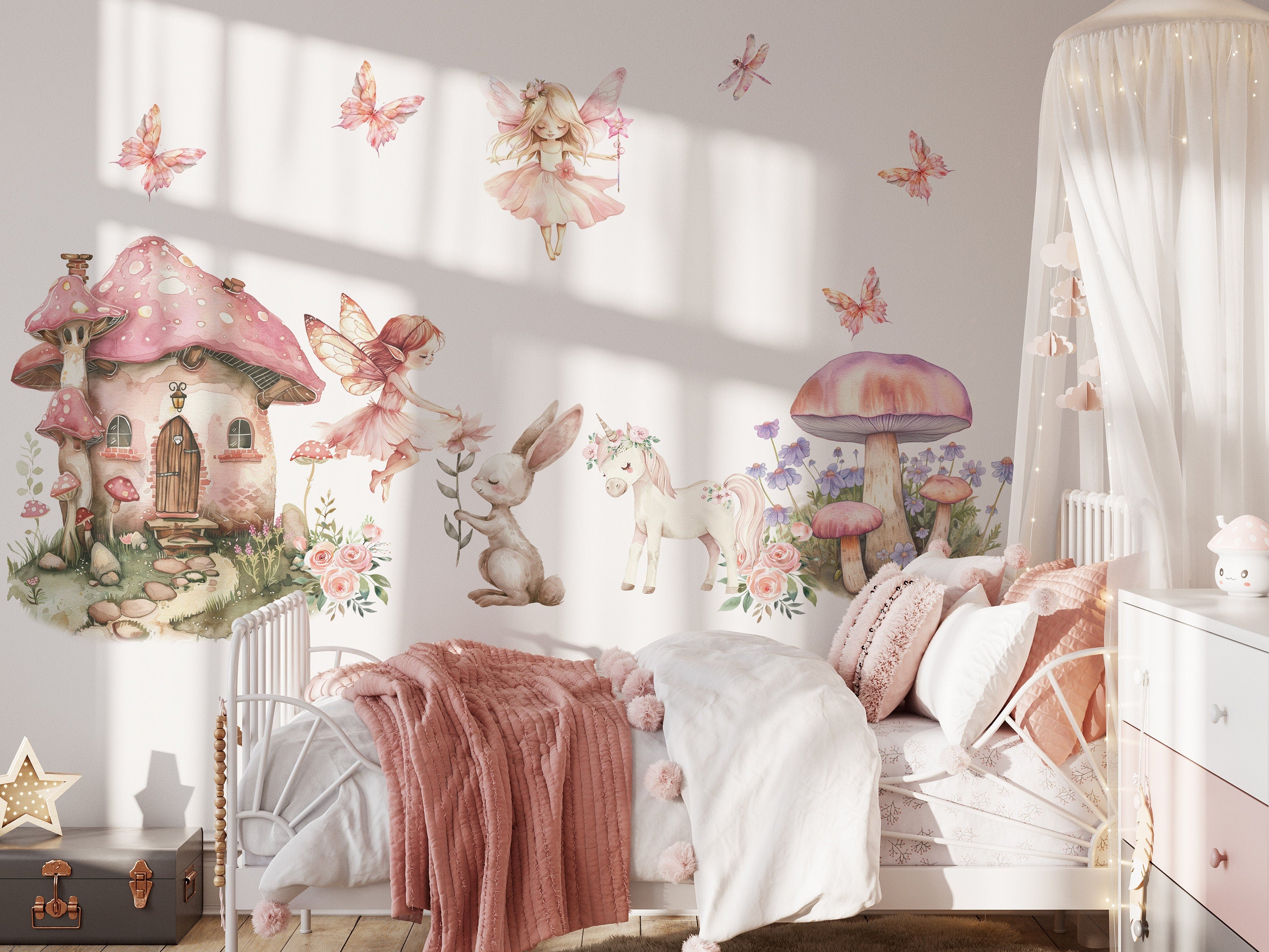 Fairy Wall stickers, fairy wall Decals – the ultimate kids' decor solution. These delightful peel-and-stick stickers feature adorable fairies in charming dresses, nestled alongside their whimsical homes. Our extensive collection boasts a variety of captivating designs to suit every little princess's taste. Explore our store for more enchanting options and be sure to review all images for inspiration.