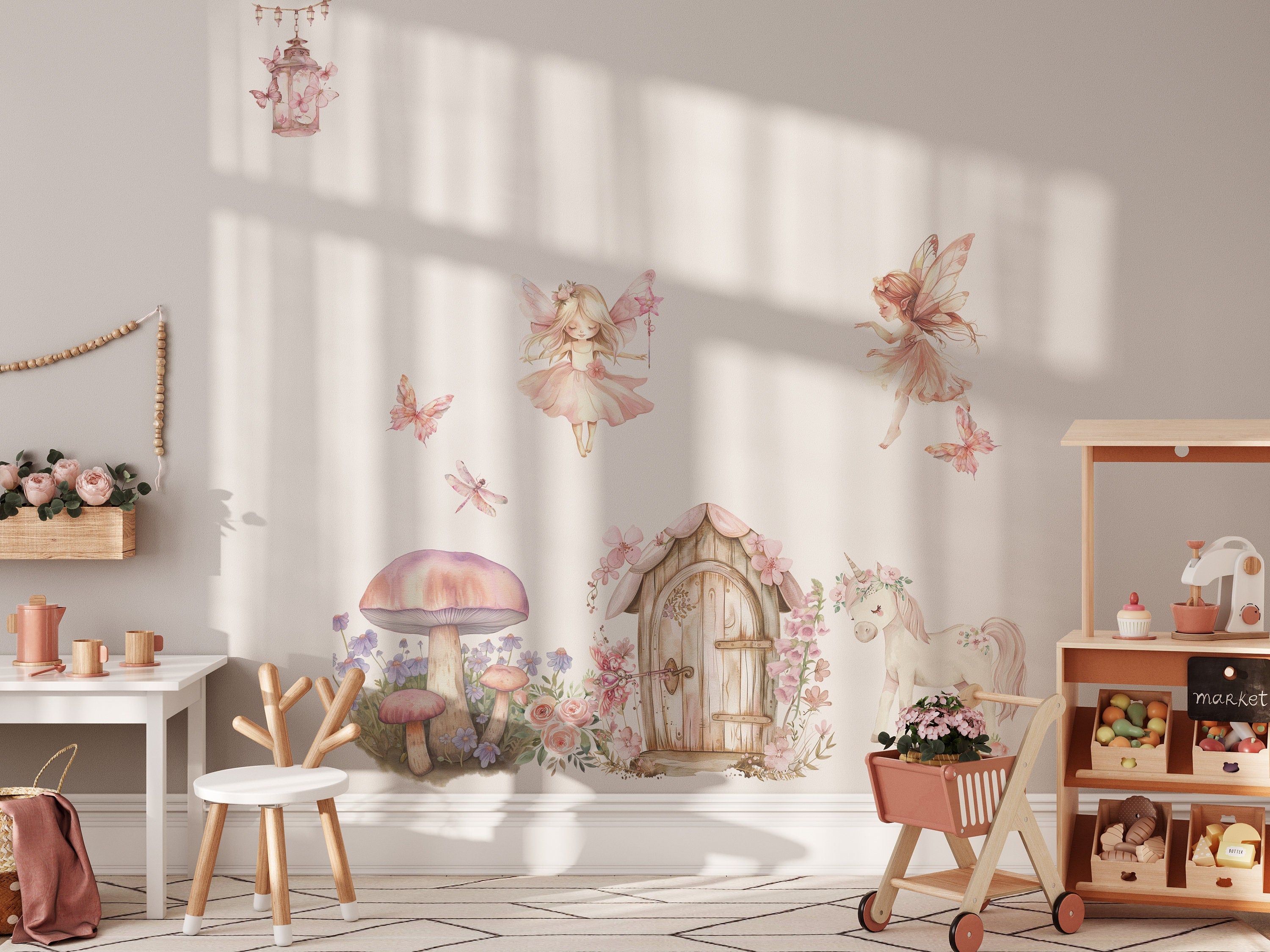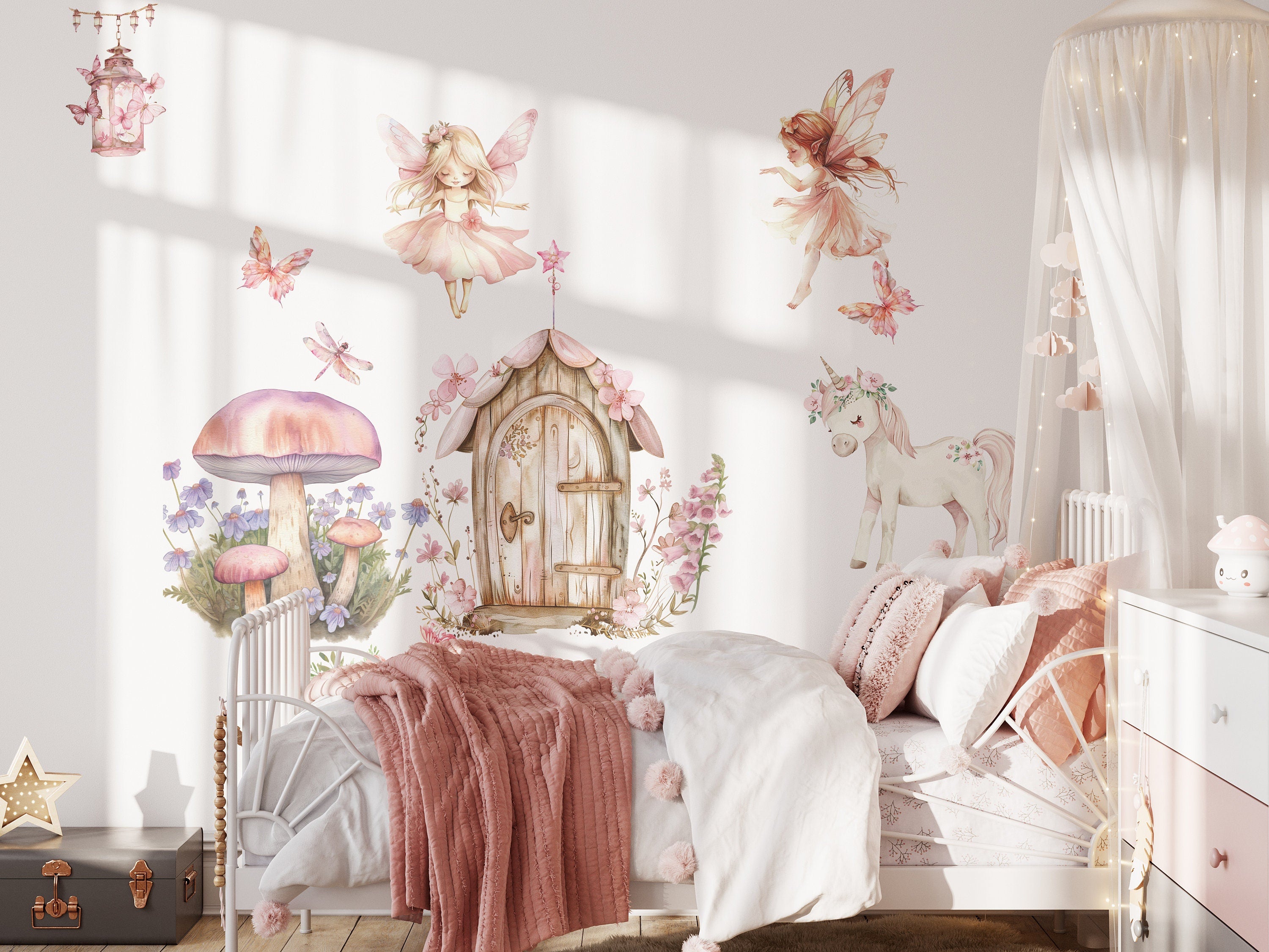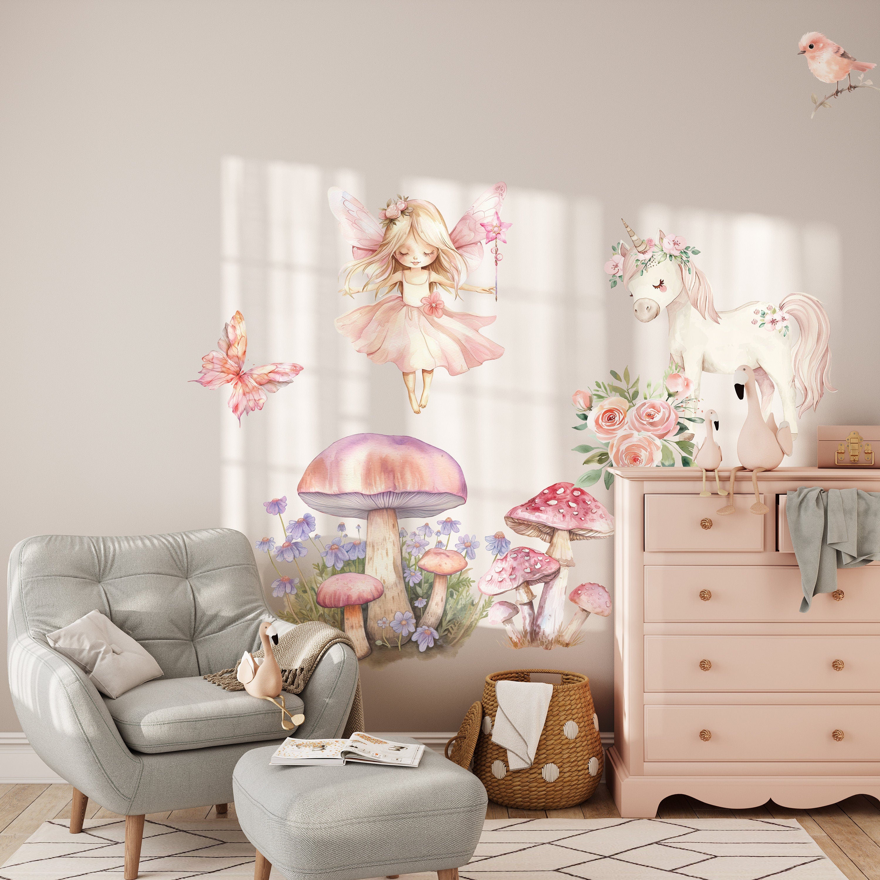 fairy wall stickers, unicorn wall decals, kids room wall decals, fairy art, fairy decals