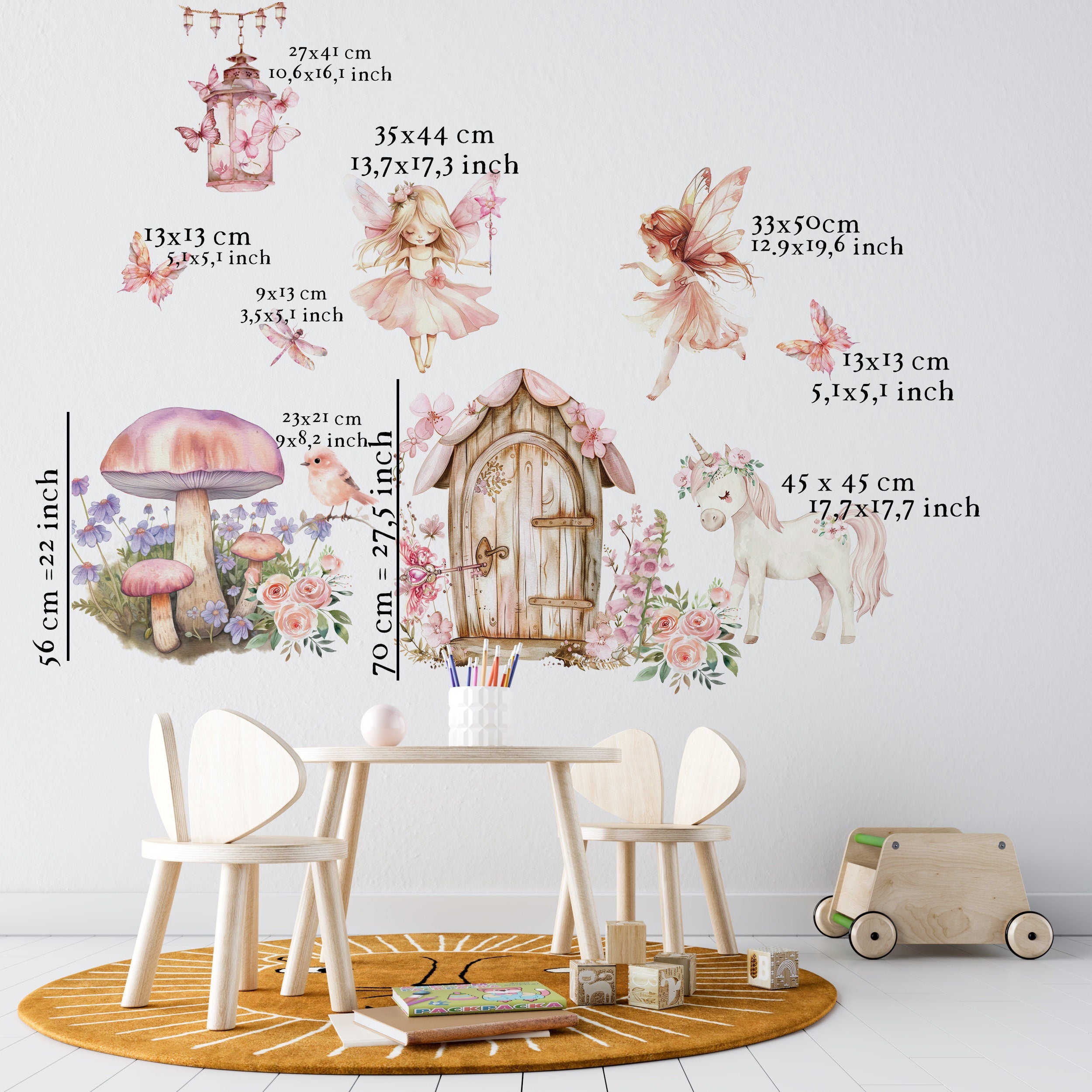 • fairy wall stickers, unicorn wall decals, kids room wall decals, fairy art, fairy decals