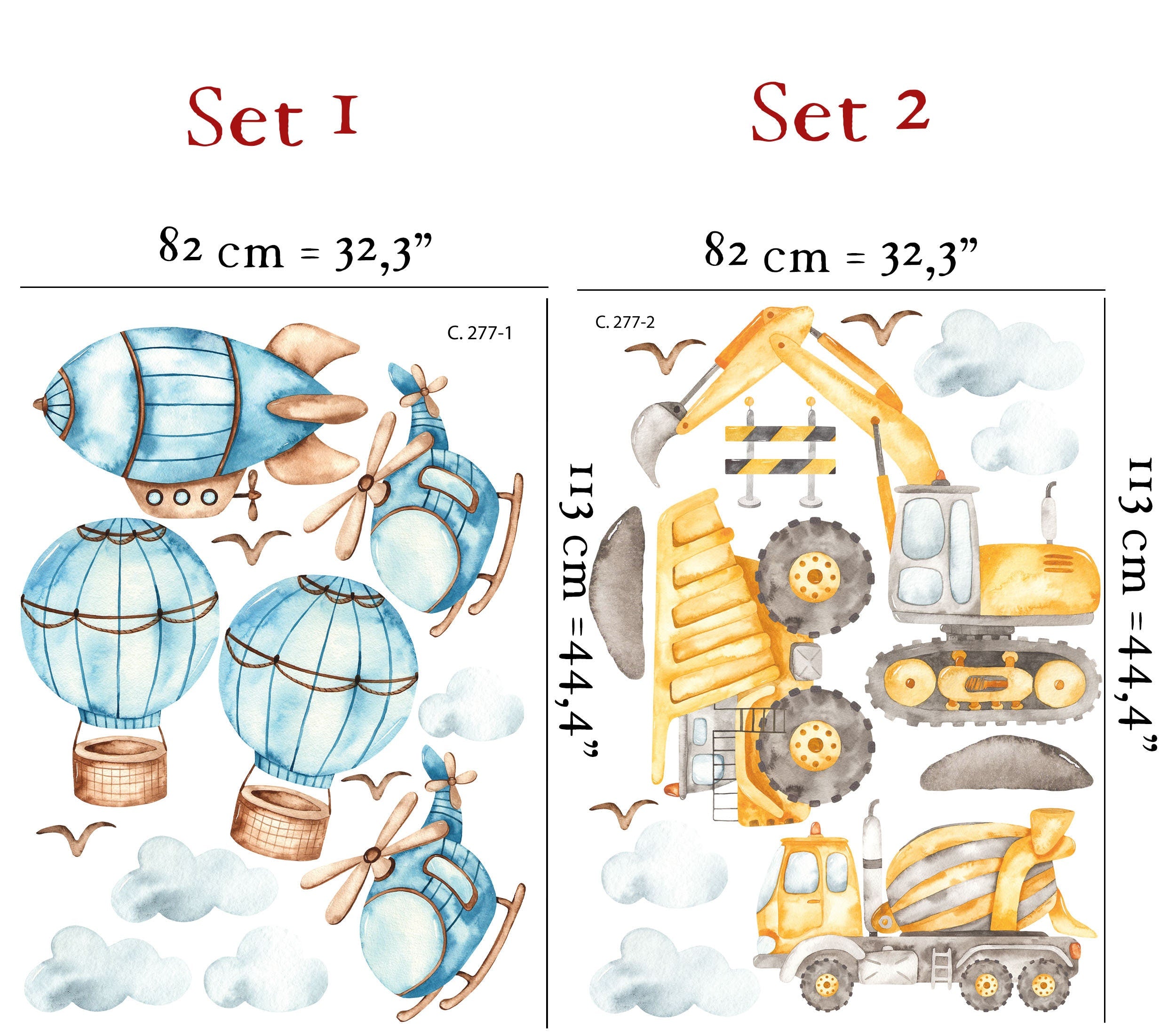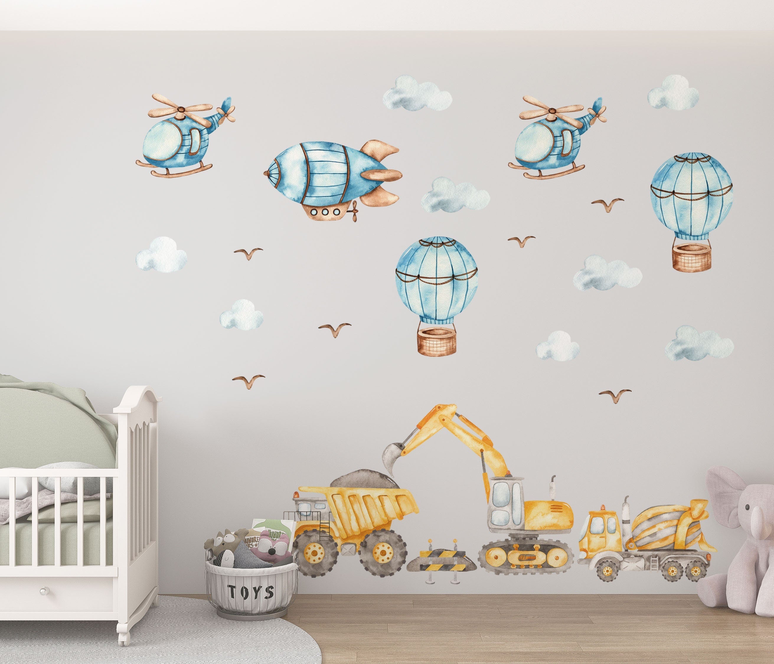 Kids wall decals Transport Wall Decal construction decals with plane wall decal is amazing wall decoration. This nursery wall decals is perfect for all fans of planes and cars. Kids love construction wall decals fascinating big machines can be in your child's room. Very easy application of each set. Prepare great kids wall decals for your child.