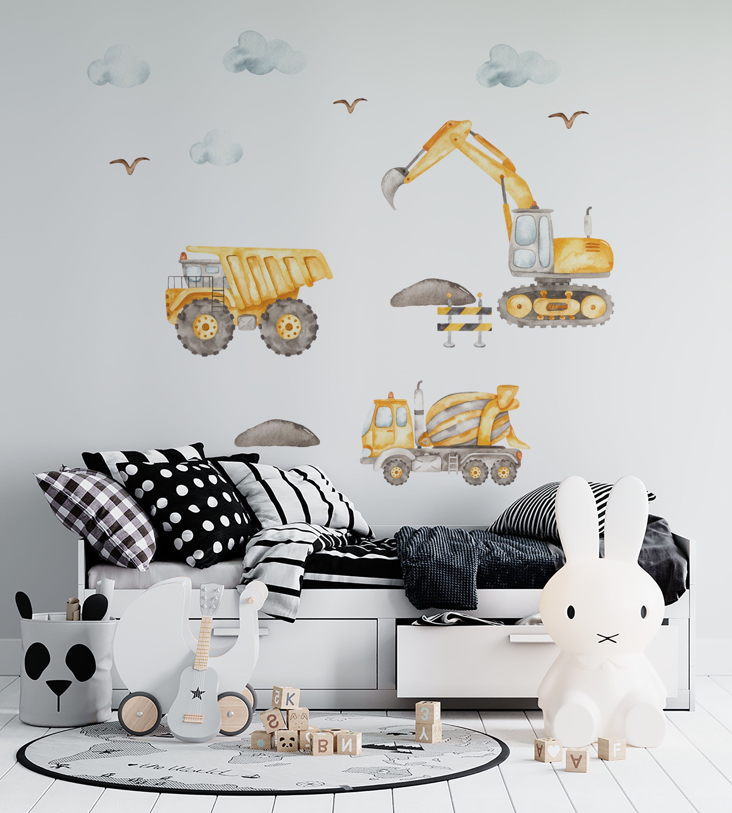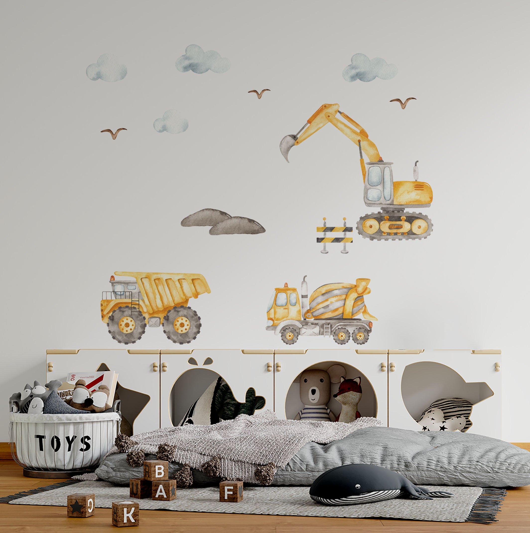 Kids Transport Wall Decal, construction decals, diggers wall stickers, kids car decal, wall decals, kids wall decal, nursery wall decal