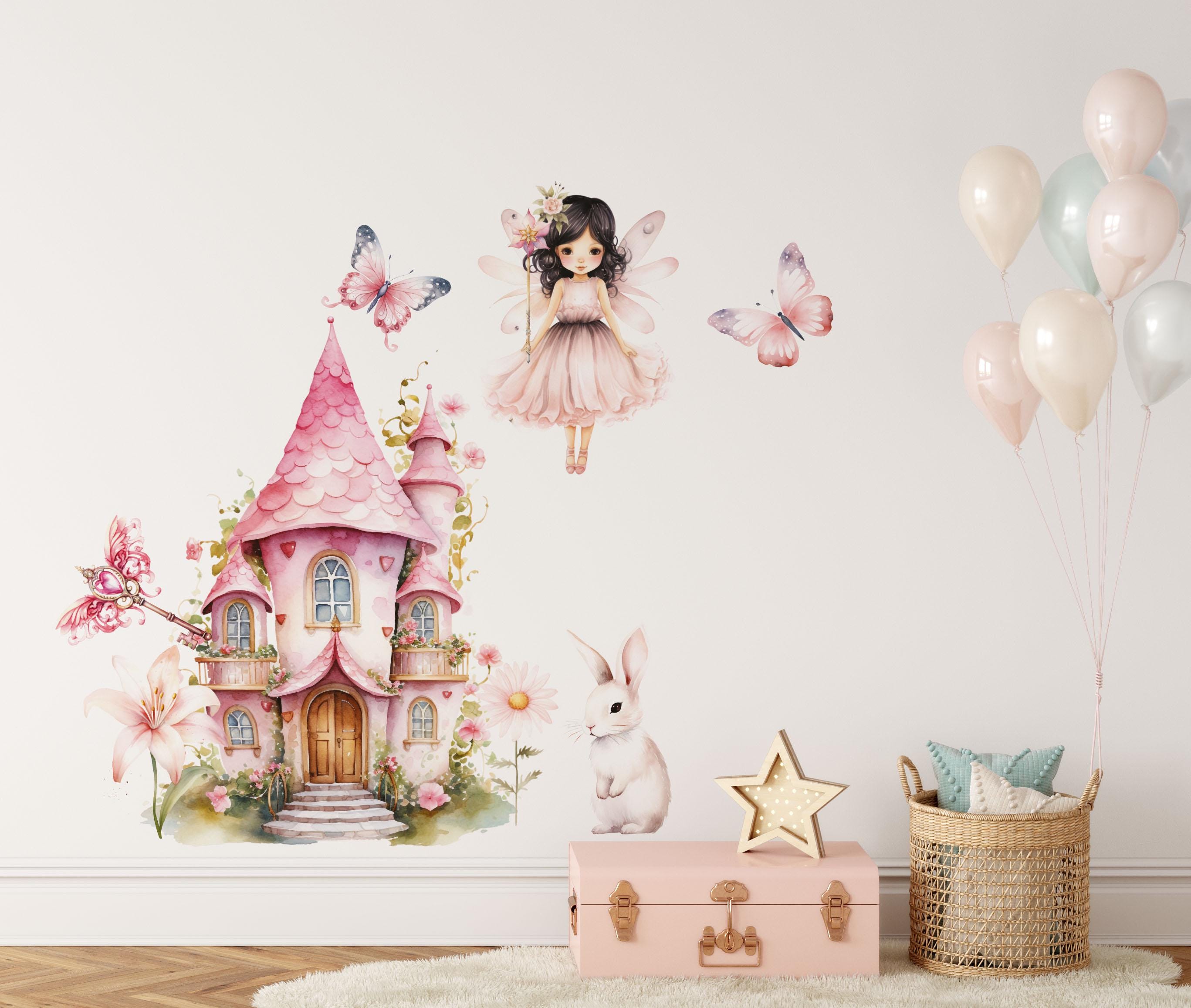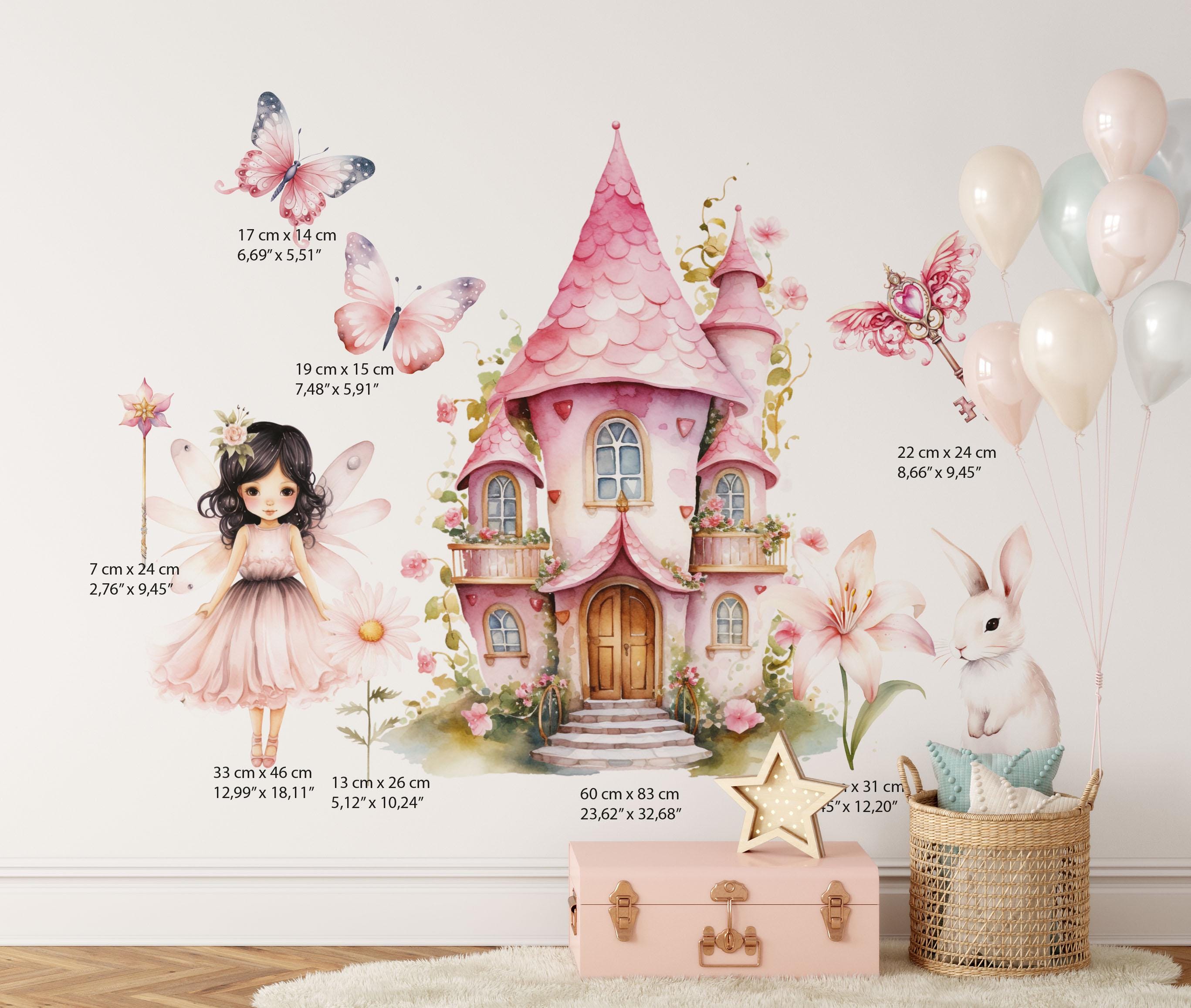 Pink Fairy wall Decals are the perfect touch for any magical nursery or girl's room. These charming wall stickers include a fairy, bunny, pink castle, clouds, and stars – each element is cut to shape and sent separately, allowing you to create a unique composition on your wall. Pink Fairy wall Decals are printed with water-based, child-safe inks on two material options for smooth or textured walls. The decals are removable, making them perfect for renters and growing children’s rooms. All our products are shipped as registered, insured packages with tracking available at each delivery stage. If needed, we can customize sizes or design individual arrangements from existing sets. Pink Fairy wall Decals bring fairy-tale charm and gentle colors to your child’s space, creating an imaginative, soothing atmosphere. Choose safety, quality, and flexibility with our fairy wall stickers.
