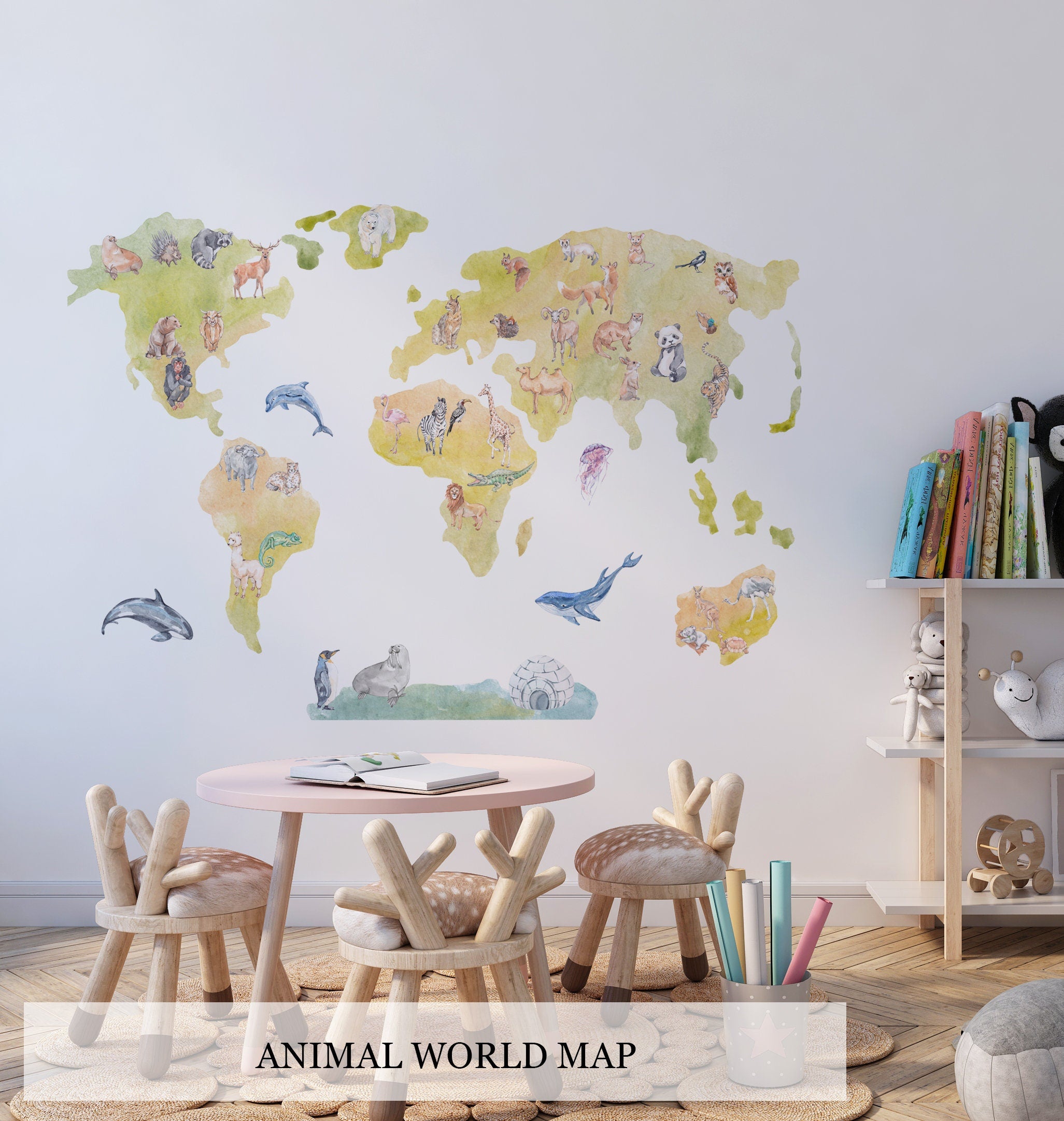 Let your child explore the world from their room – order this watercolor animal map wall decal set today and enjoy beautiful, safe, and educational decor with free shipping!